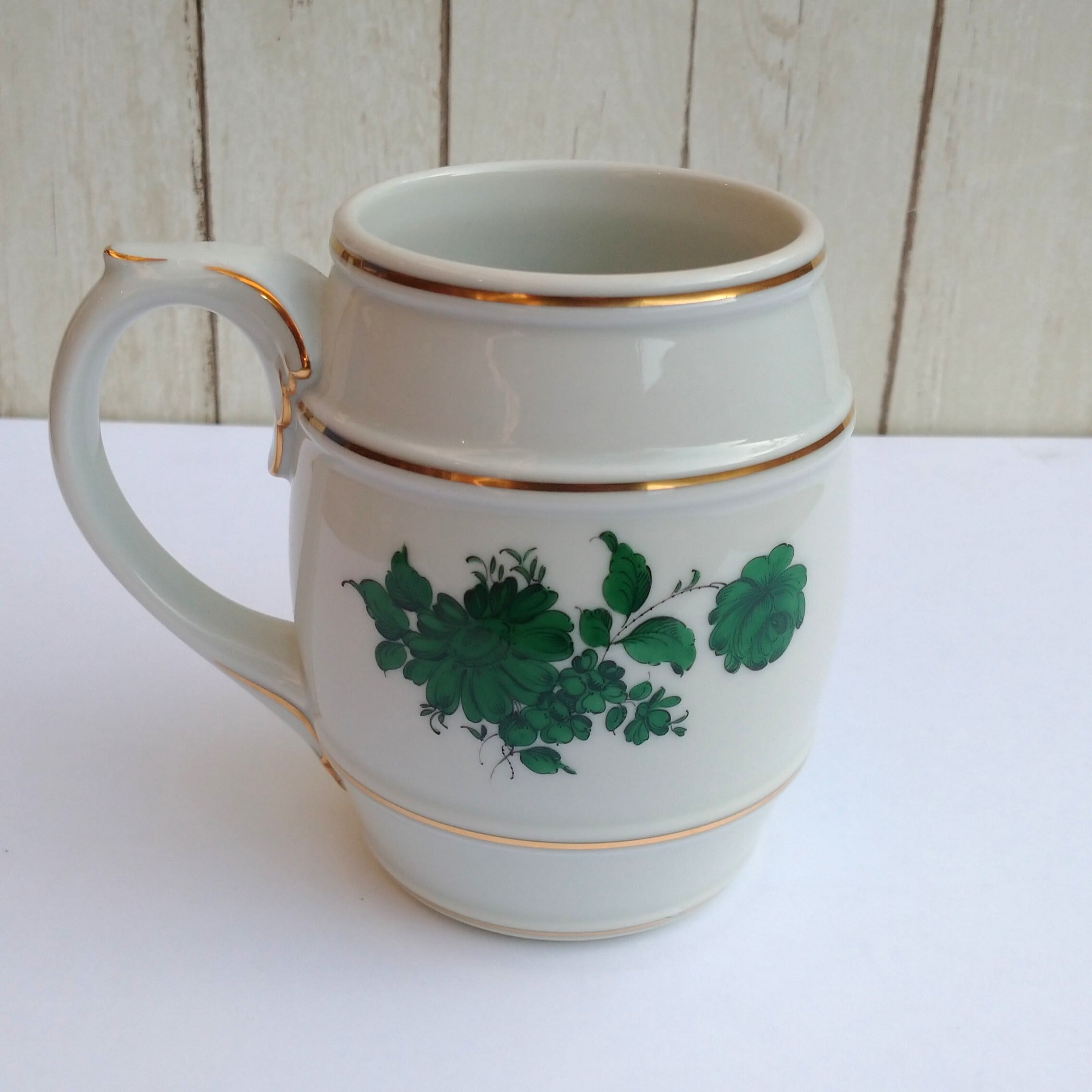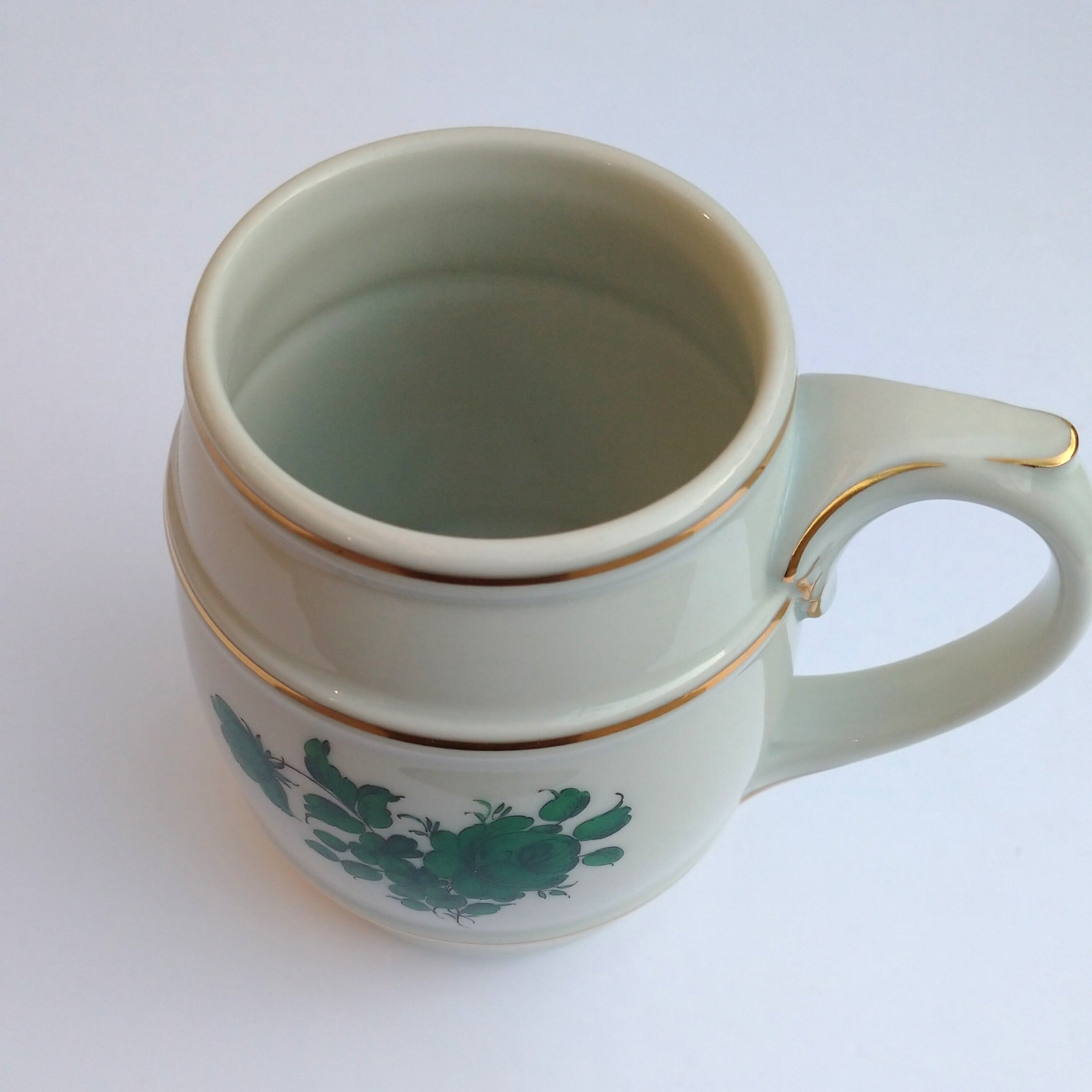 アウガルテンのマリアテレジアのビアマグ。1987年にファーストシリーズ第9弾として発売。ビール樽をイメージしたシェイプがかわいらしいくもエレガントな一品です。
