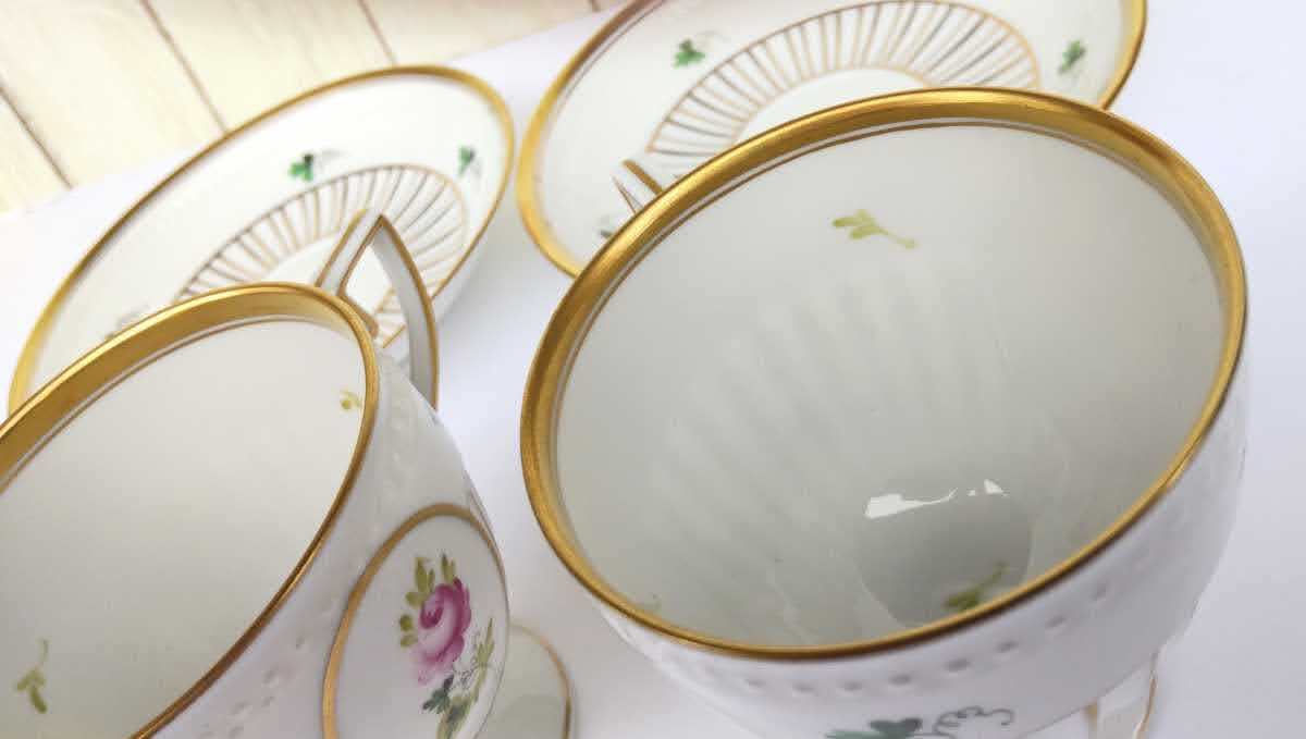 ①【廃盤希少品】Herend ヘレンド ウィーンの薔薇 金彩アンピールカップ&ソーサー(2客組)